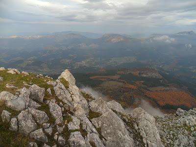 y salimos a la tradicional subida al Gorbea desde Murguia, continuamos subiendo con algo de fresco hasta muy cerca de la cima del Gorbea dónde hay otros tres mojones que delimitan las mugas.
